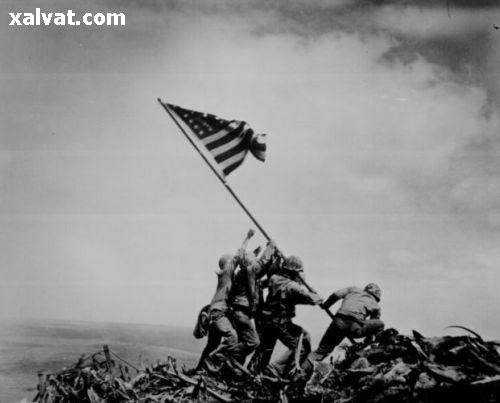 1945 ژاپن ، برافراشتن پرچم آمريكا در آيوو جيما : اين عکس در تاريخ 23 فوريه