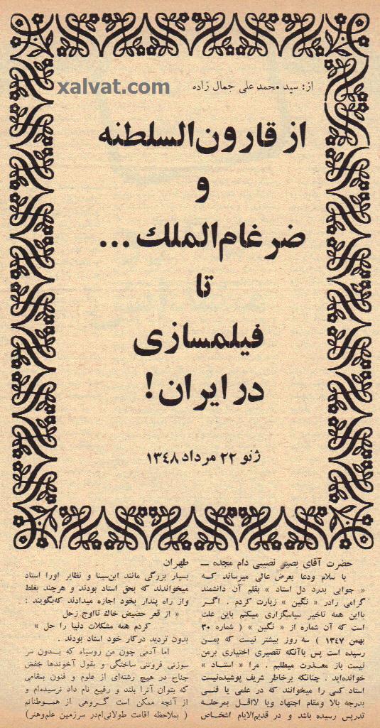 محمدعلی جمالزاده : از قارون السلطنه و ضرغام المللک ... تا فيلمسازی در ايران !