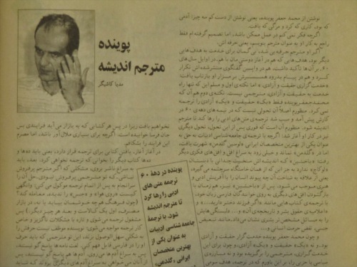 و چون محمدجعفر پوینده خدمت گزار حقیقت و آزادی بود -و نه «یک» حقیقت و «یک» آزادی- و چون برای این خدمت گزاری، مترجمی را برگزیده بود و نه مبارزه ی سیاسی یا حزبی را، بر این باورم که در ترجمه، هدف سومی را برای خدمت گزاری یافته بود: خدمت گزاری به خود ترجمه. از قضا، در میزگردی که مجله ی آدینه، در تابستان 1375، راجع به ترجمه برپا داشت، او جزو معدود شرکت کنندگانی بود که به تبیین مشخصی از شکل بحران فعلی ترجمه در ایران رسیده بود و این که به رغم فراوانی مانع های بازدارنده -از بحران نشر و فروش کتاب گرفته تا این واقعیت انکارناپذیر که با ترجمه ی کتاب، هیچ رفاهی برای مترجم ساخته نمی شود- این بحران نمی تواند نگران کننده باشد، چون بحران بلوغ و از تبعات ناگزیر رسیدن به تولید انبوه است. اگر روح حرف هایش درست در ذهنم مانده باشد، آن چه او را نگران می کرد، این بود که این بار نیز بلوغ به پختگی نرسد و نهضت دوباره جوان ترجمه ی ایران باز چا نگیرد و جوان مرگ شود. اتفاقی که در یکصد سال گذشته مکرر افتاده است.