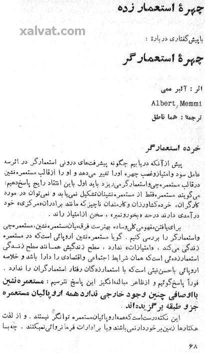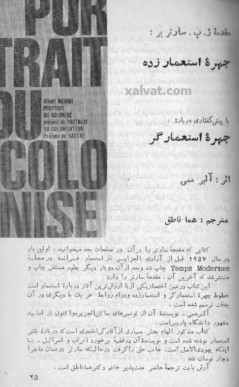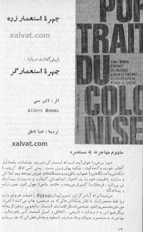 ژان پُل سارتر / آلبر ممی (برگردان : هُما ناطق) : چهرهء استعمار زده
