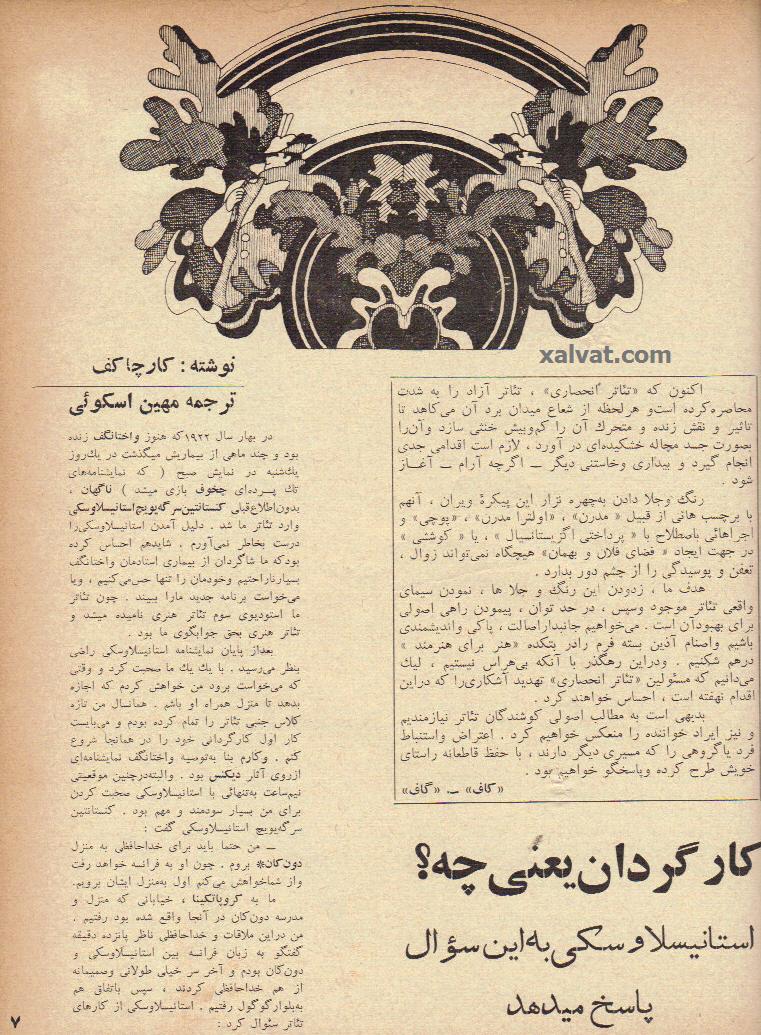 کارچاکف (برگردان : مهين اسکوئی) : استانيسلاوسکی به اين سئوال پاسخ می دهد ؛ کارگردان يعنی چه ؟