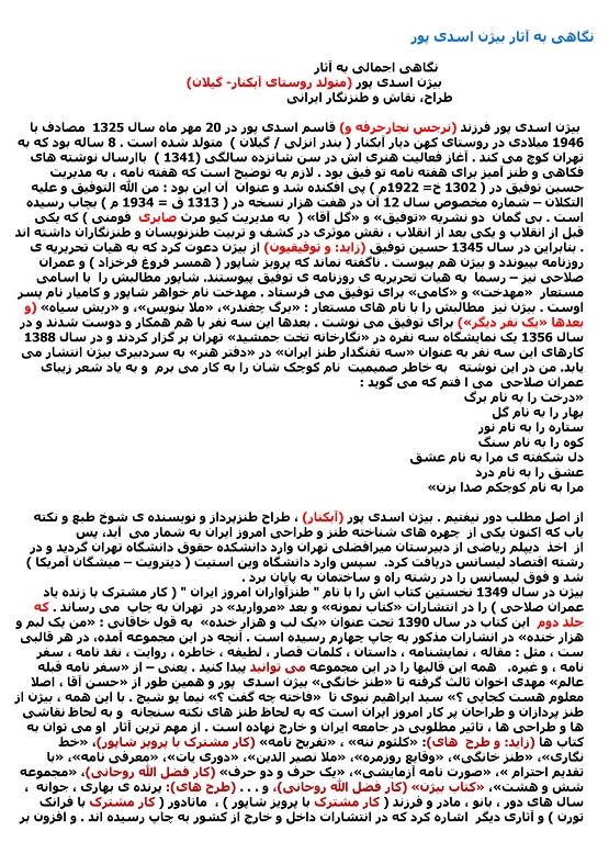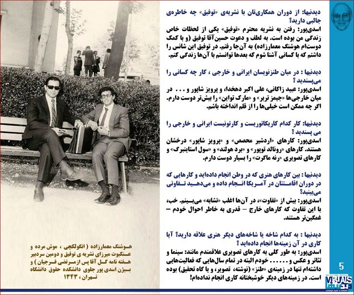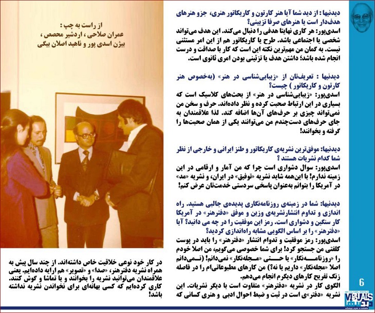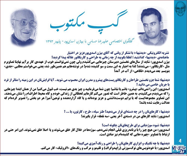 گپ با بیژن اسدی پور(کاريکاتوريست و طنزپرداز) به بهانۀ انتشار شمارۀ مخصوص نشریۀ «دفتر هنر» در نوروز امسال علی صدر