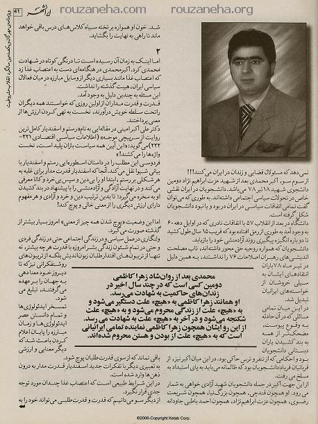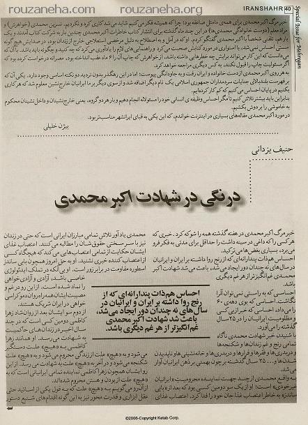 حنيف يزدانی : "درنگی در شهادت اکبر محمدی "