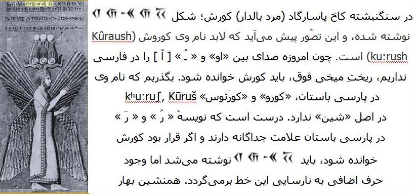 به بعد - آخر ویدئوی زیر ـــــــــــــــــــــ الواح تحت جمشید در شیکاگو سالهای ۱۳–۱۳۱۲ و ۱۷–۱۳۱۶ در کاوشهای تختجمشید و کاخ خزانه، شمار بسیار زیادی «گلنوشته» کشف شد که بیشترشان از باروی استحکامات شمال خاوری به دست آمدند. در میان گلنوشتهها، الواحی هم به زبان آرامی، و زبان بابلی نو (اکدی) و… وجود داشت. پژوهش و خوانش لوحهها توسط جرج کامرون G. Cameron متخصص زبانهای باستانی انجام شد که در کتاب لوحههای خزانه تختجمشید Persepolis Treasury Tablets ثبت شدهاست. پس از آن ریچارد هالوک R. T. Hollock کار را بر روی حدود دو هزار لوحه بدست آمده از باروی تختجمشید ادامه داد و گزارش و ترجمان خود را در کتاب لوحههای استحکامات تختجمشید Persepolis Fortification Tablets در سال ۱۹۶۹ منتشر ساخت. ایشان پس از آن نیز چندین مقاله در این زمینه در نشریات گوناگون به چاپ رساند. ریچارد هالوک در سال ۱۹۷۷ خبر از خوانش ۴۵۰۰ لوح دیگر را هم داد اما پس از درگذشت او، تکمیل و منتشر نشدند. بعدها صحبت از حراج این گلنوشتهها شد که یکی داستانیست پُر آب چشم. الواح مزبور از سال ۱۳۱۴ نزد مؤسسه خاورشناسی دانشگاه شیکاگو (The Oriental Institute(OI به امانت مانده بود و دکتر عبدالمجید ارفعی هم در کتاب «گلنوشتههای باروی تخت جمشید» به آن اشاره کردهاست. ـــــــــــــــــــــ پساحقیقت Post-truth سال ۱۹۱۷؛ بعد از بیانیه بالفور Balfour Declaration (تعهد انگليس که در منطقه فلسطين کشوری يهودی ايجاد کند) تصویر پادشاه انگلستان در کنار پیکره کورش بزرگ، چاپ و پخش شد. سال ۲۰۱۹ هم، بعد از آنکه عالیجناب ترامپ، بلندیهای جولان را جزو قلمرو اسرائیل دانست و بیت المقدس را به عنوان پایتخت آن کشور به رسمیت شناخت، نتانیاهو «بلندیهای ترامپ» را در جولان رونمایی کرد و سکهای در اسرائیل ضرب شد که روی آن نقشی از دونالد ترامپ در کنار نقشی از کورش هخامنشی حک شده بود. کورش بزرگ کنار ترامپ! بازی با حقیقت، یا بهتر بگویم «پساحقیقت» Post-truth گزارههایی که واقعی احساس میشود اما پایه و اساسی در واقعیت ندارند. ــــــــــــــــــــــــــــــــــــــــــــــــــــ منابع • ابن خلدون، ضبط المتن و وضع الحواشی و الفهارس • ابوریحان بیرونی، آثارالباقیه عن القرون الخالیه • آملی کورت Amelie Kuhrt، شاهنشاهی پارسی(مجموعهای از منابع مربوط به دوره هخامنشی) • گزنفون، «سیرت کورش کبیر»، ترجمه علی وحیدمازندرانی • صدرالاشرافی، ضیاء، نظری به استوانه کورش • قدرت دیزجی، مهرداد، تاریخ هخامنشی در منشور کورش • ویل دورانت، تاریخ تمدن، مشرق گهواره تمدن • معین، محمد، شاهان کیانی و هخامنشی در آثارالباقیه • زرینکوب، عبدالحسین، «تاریخ مردم ایران»، (ایران قبل از اسلام) • زرینکوب، روزبه. کورش هخامنشی در منابع یونانی • دریایی، تورج، جلیلیان، آذردخت، کورش بزرگ پادشاه باستانی ایران • مرادی غیاثآبادی، رضا، رویدادنامه نبونید و کورش • ترابی، هایده، هم «عیلام»، هم «پارس»، هم «ایران» و هم «ممالک محروسه ی ایران» • مهرداد ایران مهر، کورش، که همان کیخسرو نیست • باستانی پاریزی، محمد ابراهیم، کورش در روایات ایرانی • آموزگار، ژاله، نگاهی تاریخی به منشور کورش (گفتوگو) • آموزگار، ژاله، اشاره به نیروهای فراسویی در استوانه کورش و سنگ نوشتههای هخامنشی • شهبازی، شاپور، زندگی و جهانداری کورش کبیر • بدرهای، فریدون، کورش کبیر در قرآن و عهد عتیق • هارولد لمب، کورش کبیر، ترجمه دکتر رضازاده شفق • فرخ، کاوه، استوانه کورش بزرگ واسناد دیگر در بابل، مصر و ستون سنگی یادبود زانث • ایسرائل، ژرار، «کورش بزرگ»، ترجمهی مرتضی ثاقبفر، • آملی کورت، هخامنشیان، ترجمه مرتضی ثاقب فر • هرودوت، تاریخ هرودوت، ترجمه مرتضی ثاقب فر • لقمان، مسعود، گفتگو با دکتر عبدالمجید ارفعی • پیرنیا، حسن، تاریخ ایران باستان، جلد اول • رضائی باغبیدی، حسن، دربارهی نام کورش • مک گرگور، نیل، منشور کورش بزرگ هنوز قوی ترین و موثرترین صدا در خاورمیانه است • یزدان صفایی، کورش یا کوروش؟ • گی راشه، کورش خور