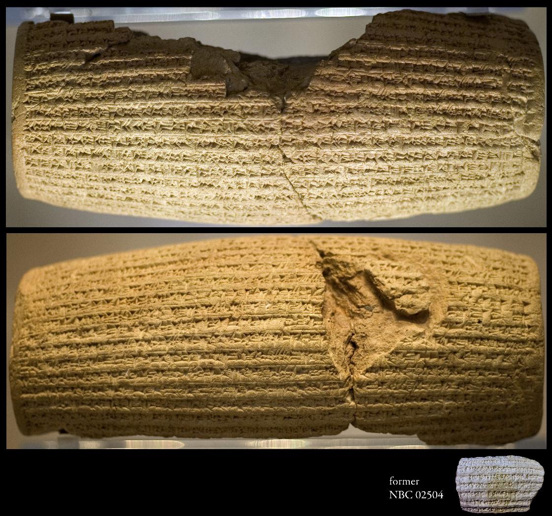 ... ![]() با بررسی دو قطعه ناشناخته در مجموعه موزه بریتانیا، همچنین عکسها و نامههای شخصی هرمزد رسام (کاشف استوانه) درباره این لوح در بابل، و نیز نامههای شخصی هنری رالینسون (نخستین کسی که موفق به خواندن کتیبه بیستون شد) ـ اکنون، ترجمه دقیقتری از متن استوانه کورش دراختیار داریم. به گفته دکتر شاهرخ رزمجو، با استفاده از دو قطعه مزبور، تا حدودی جای خالی برخی سطرهای شکسته شده، پُر شدهاست.