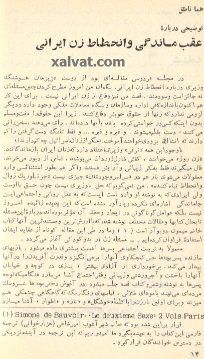 هما ناطق : توضيحی دربارهء عقب ماندگی و انحطاط زن ايرانی