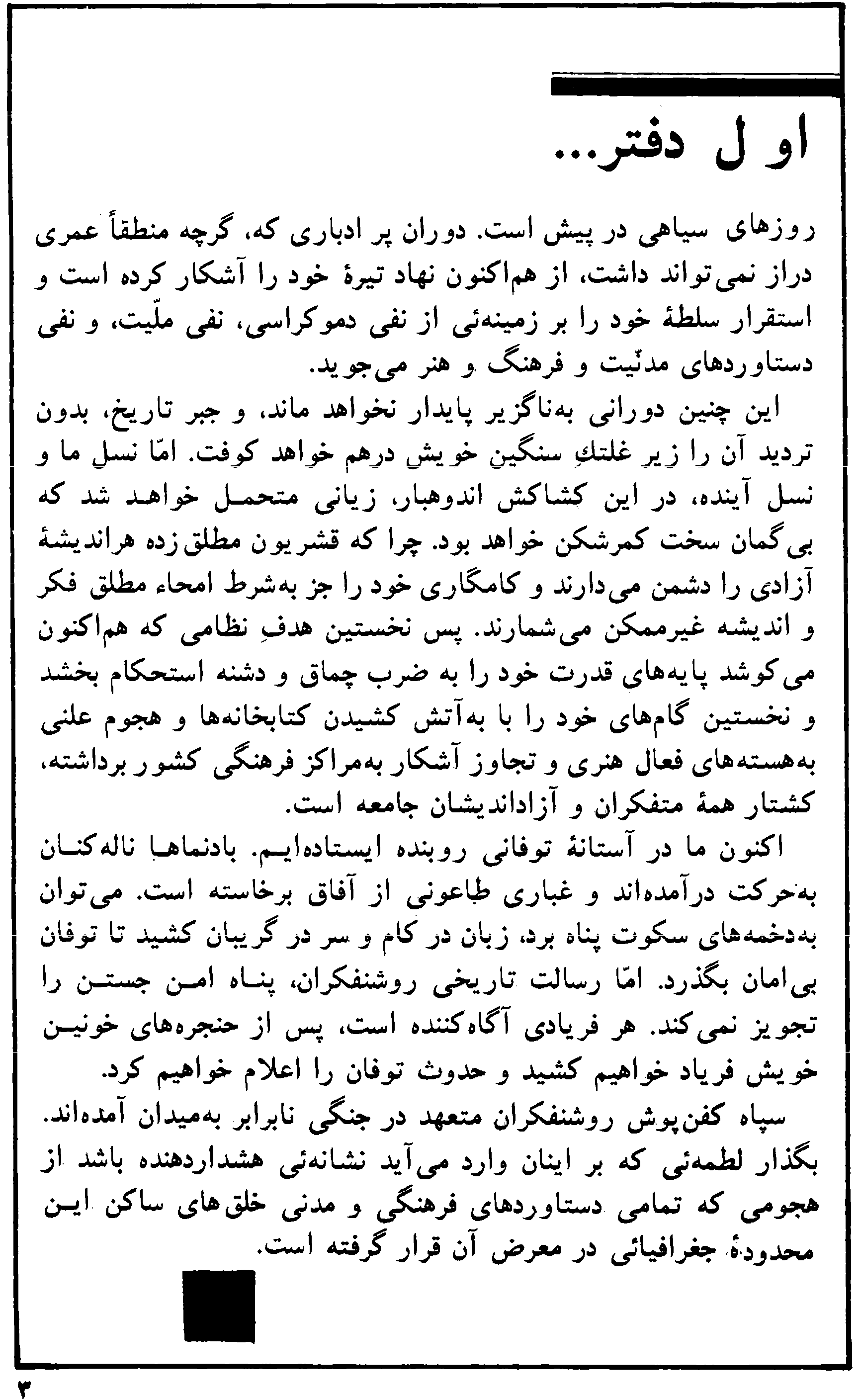 شاملو در سرمقاله شمارهء اول "کتاب جمعه" ، اینچنين