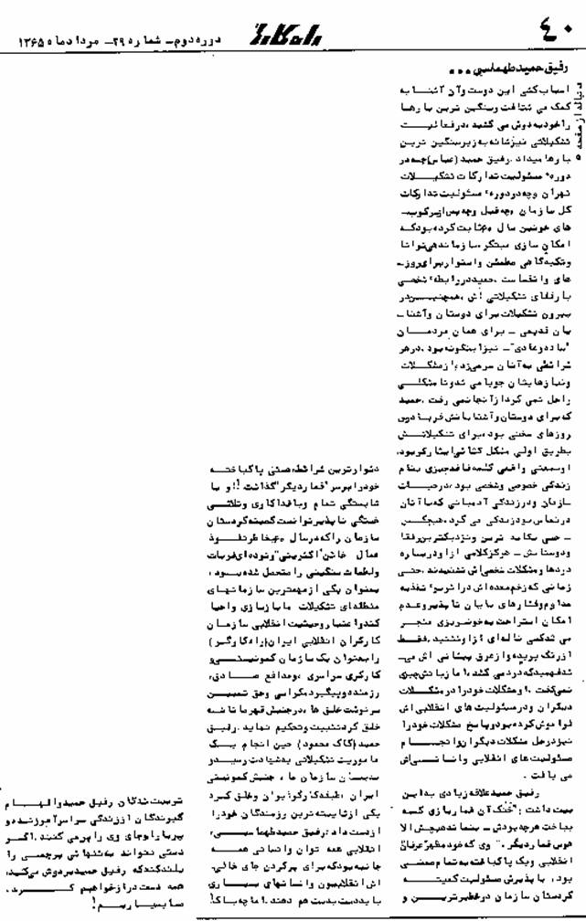 صفحه ای که " راهِ کارگر " به حميد اختصاص داده بود را می آورم . با اين توضيح