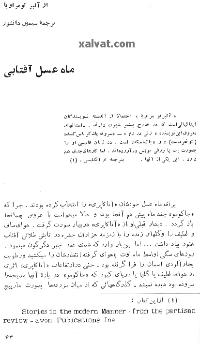 آلبرتو مُراويا (برگردان:سيمين دانشور) : ماه عسل آفتابی