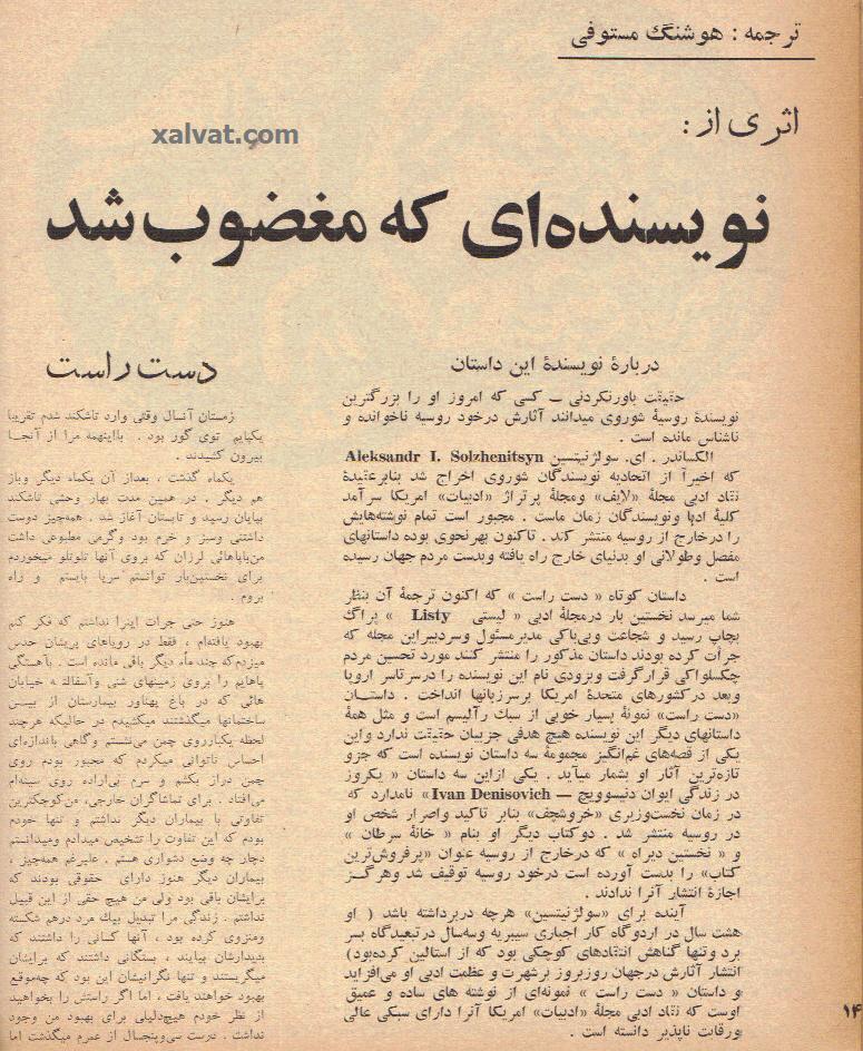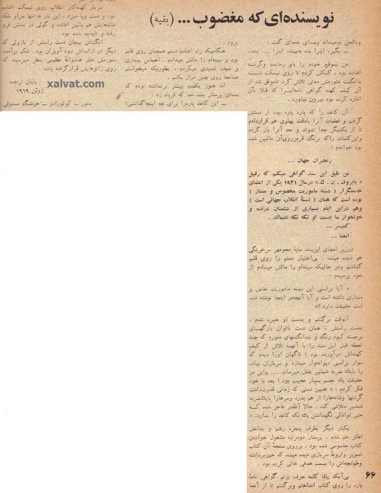 [ اين نوشته از شماره های جلد شدهء دوره اول "نگين"(چاپ تهران) آمده است و بخاطر ِ فشردگی صفحات ، اسکن کردنِ آنها دشوار بود ونارسائی و کج ومعوجی هائی دارد - اما بهرحال قابلِ خواندن است. با پوزش - م. ايل بيگی]