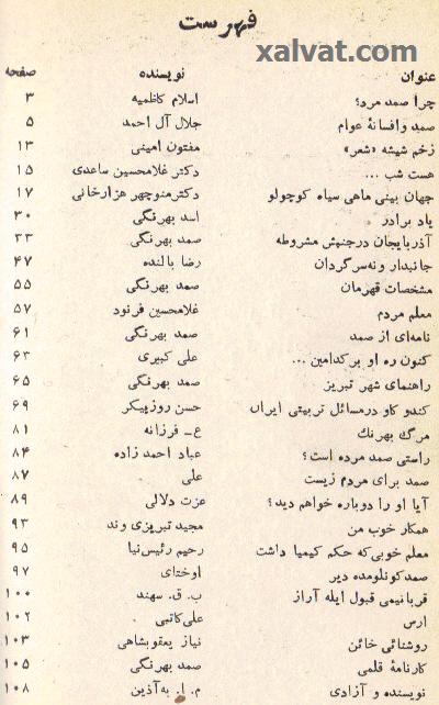 697.1 ويژه نامهء "آرش" پس از "مرگ ِ" ناگهانی ِ "صمد بهرنگی" (شمارهء 18 ، آذرماه 1347) - بخش اول ، با اين نوشته ها :