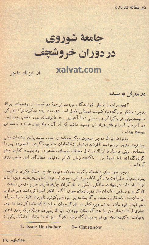ايزاک دويچر (برگردان:علی همدانی [ناصر پاکدامن]) : جامعهء شوروی در دوران خروشچف