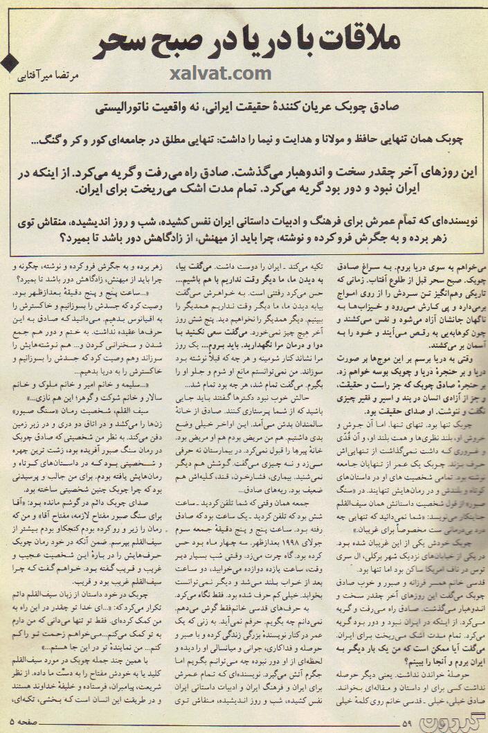 مرتضا ميرآفتابی : ملاقات با دريا در صبح سحر [صادق چوبک]