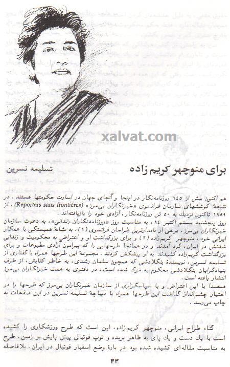 تسليمه نسرين (برگردان : شهرام قنبری): برای منوچهر کريم زاده