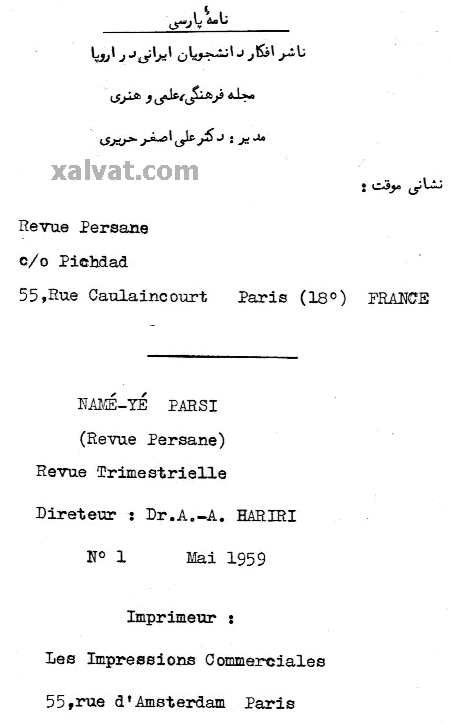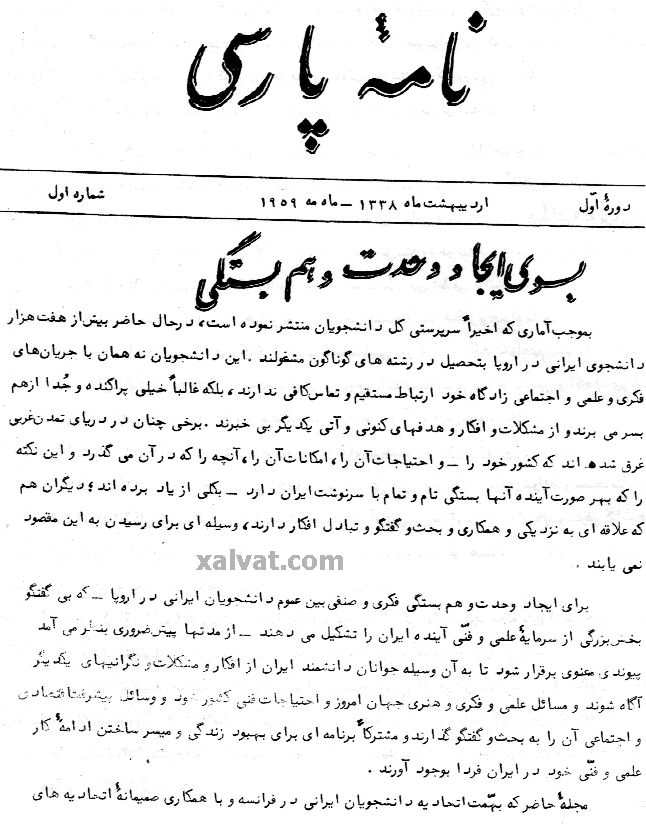 نامهء پارسی ، دورهء اول ،شماره 1 ، ارديبهشت 1338
