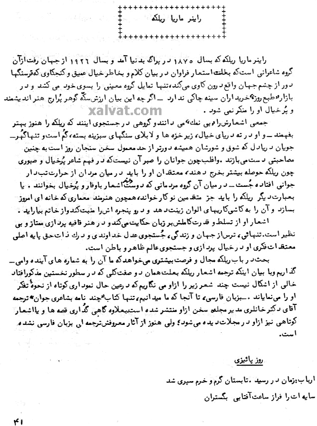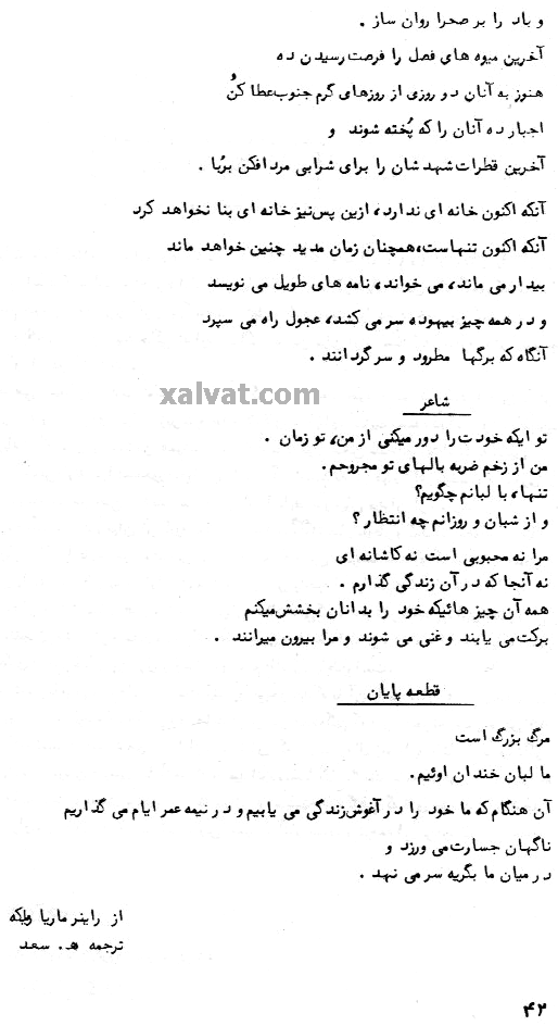 چند شعر از "راينر ماريا ريلکه" (برگردان : ه. سعد)