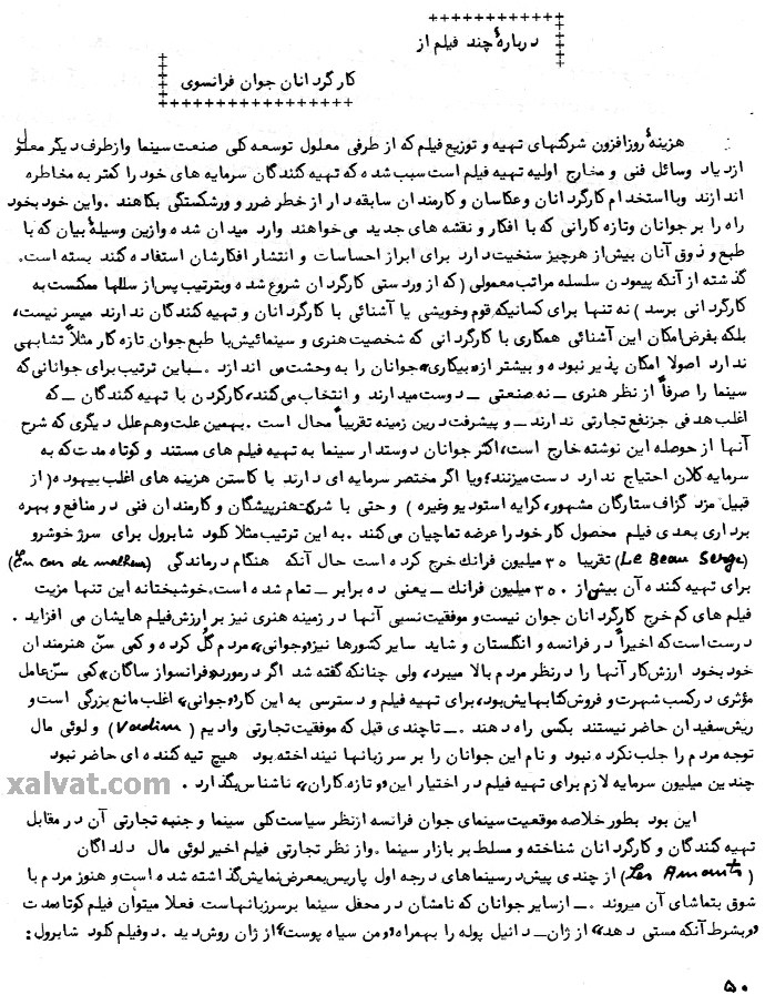 ناصر عصار : در بارهء چند فيلم از کارگردانان فرانسوی