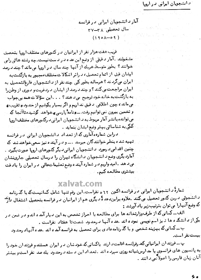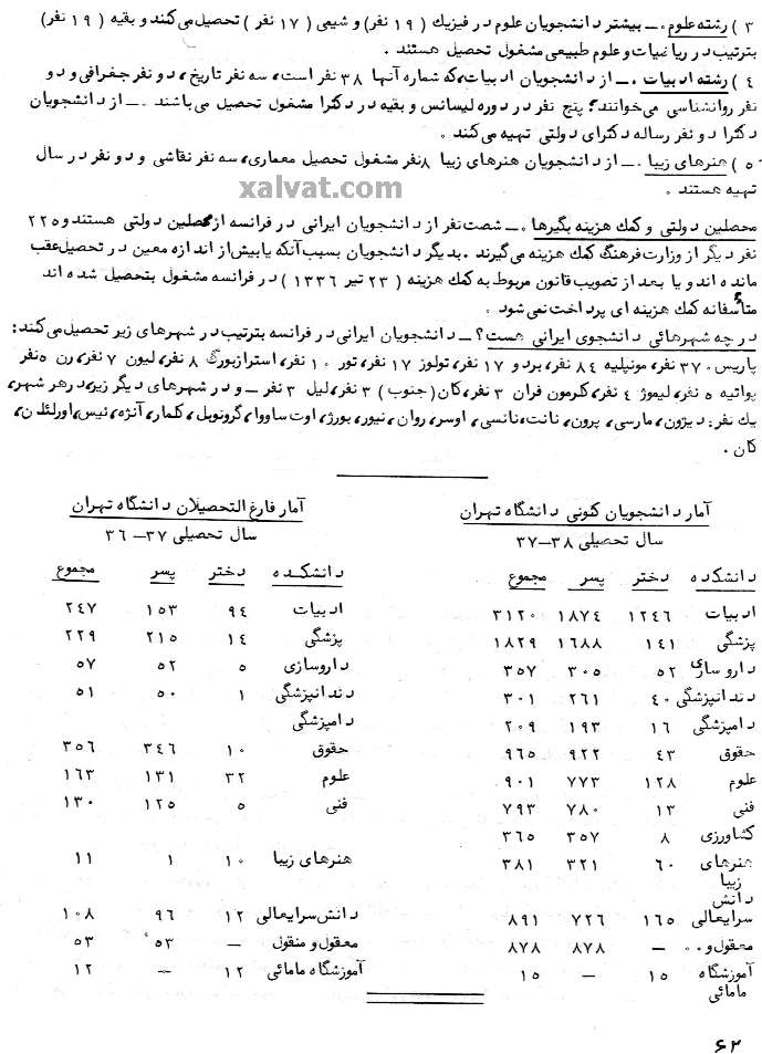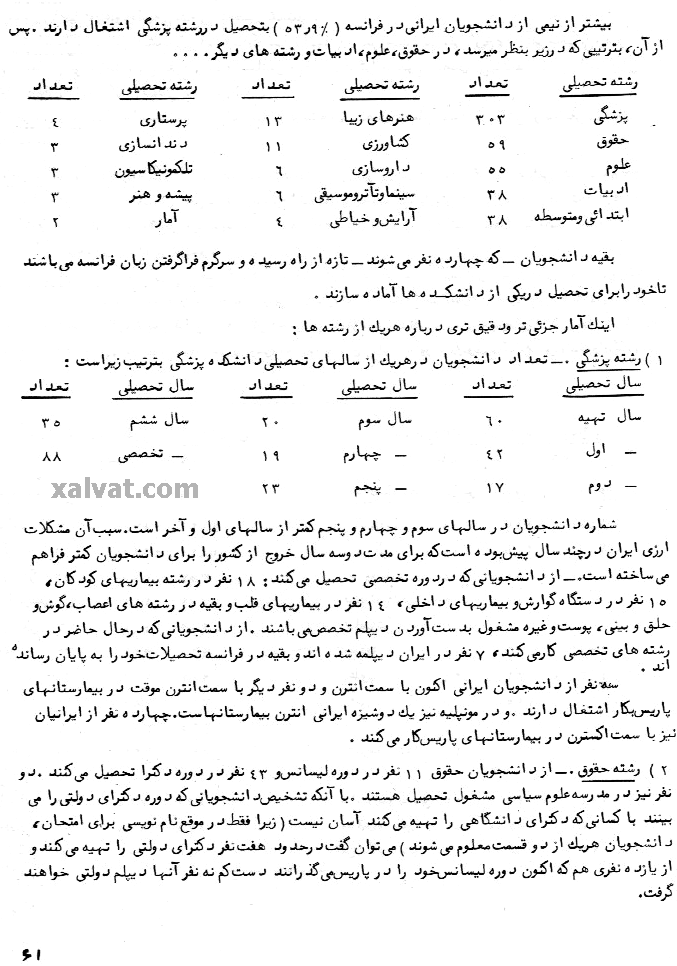 آمار دانشجويان ايرانی در فرانسه (سال تحصيلی 38-37)