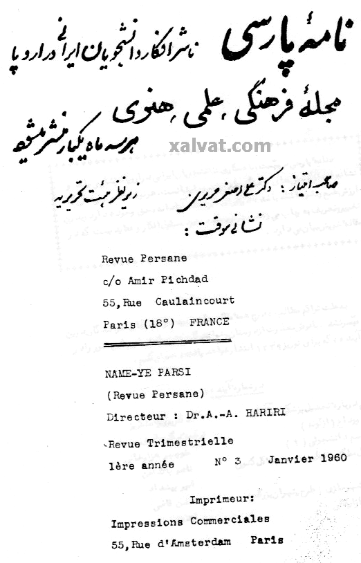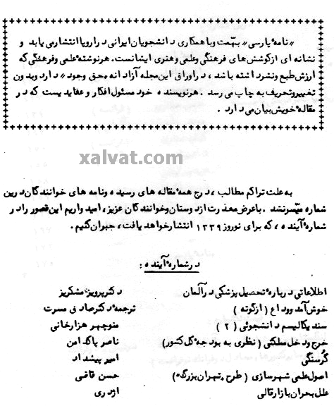 نامهء پارسی ، دورهء اول ، شمارهء 3 ، دی 1338