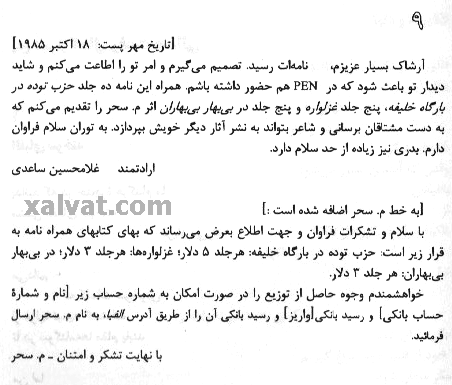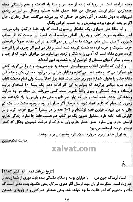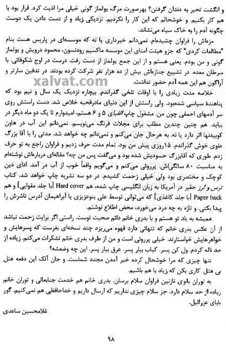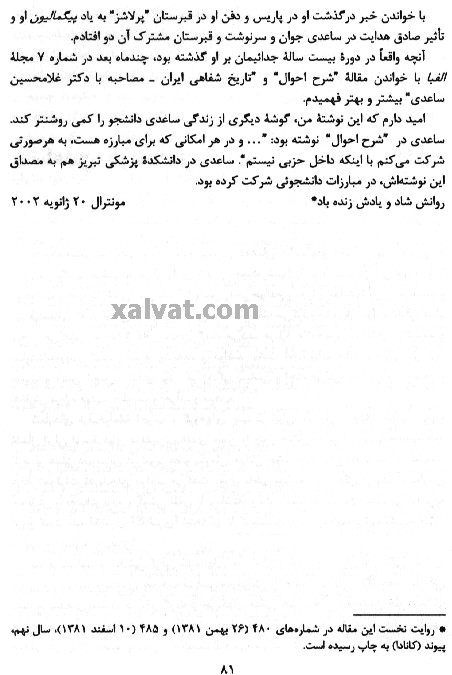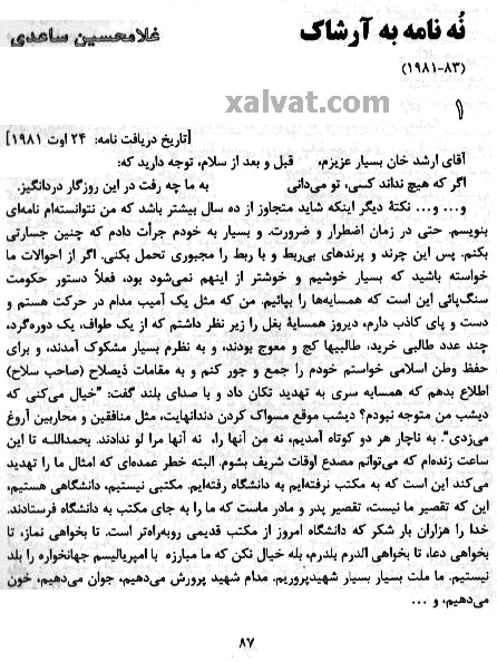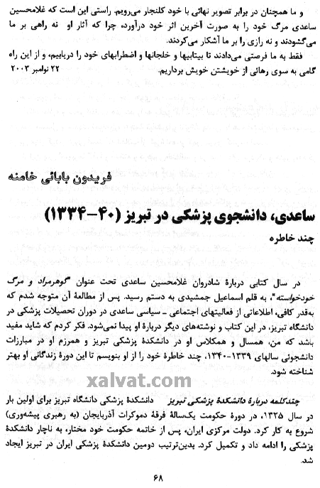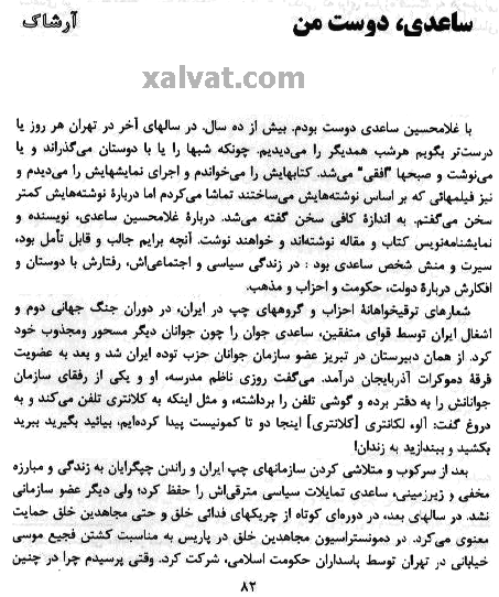 با نوشته هائی از : محسن يلفانی ، فريدون بابائی خامنه و نامه هائی از "ساعدی" به "آرشاک"