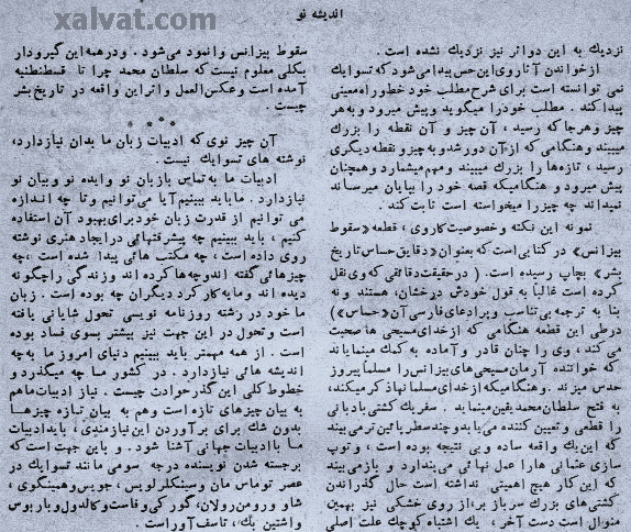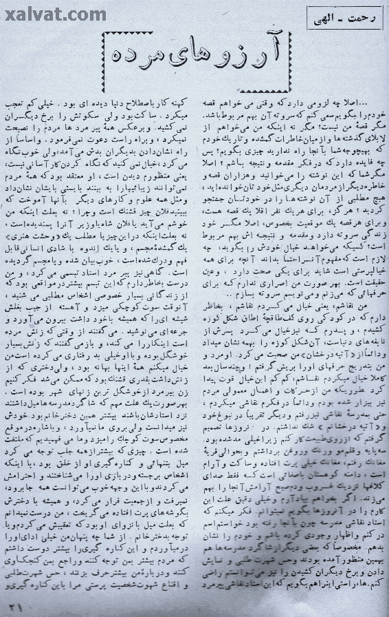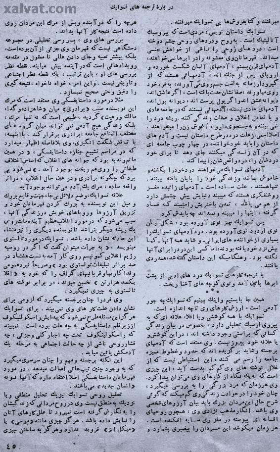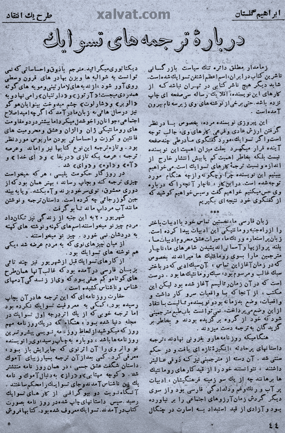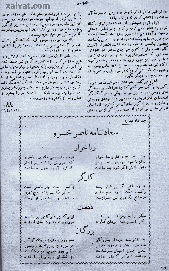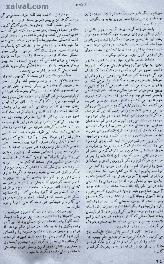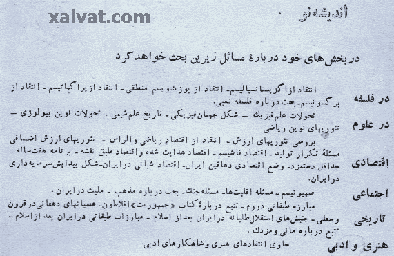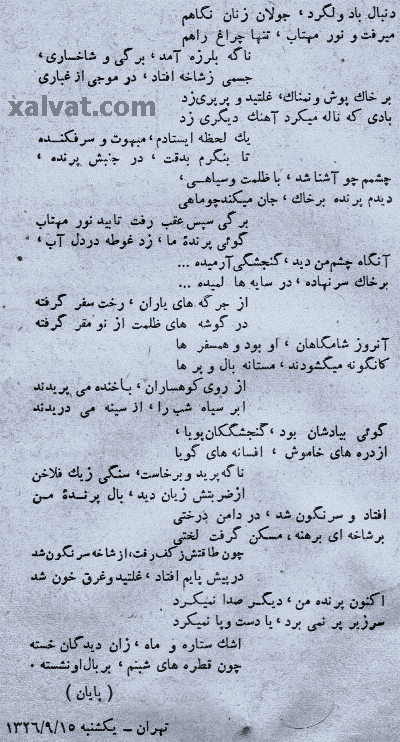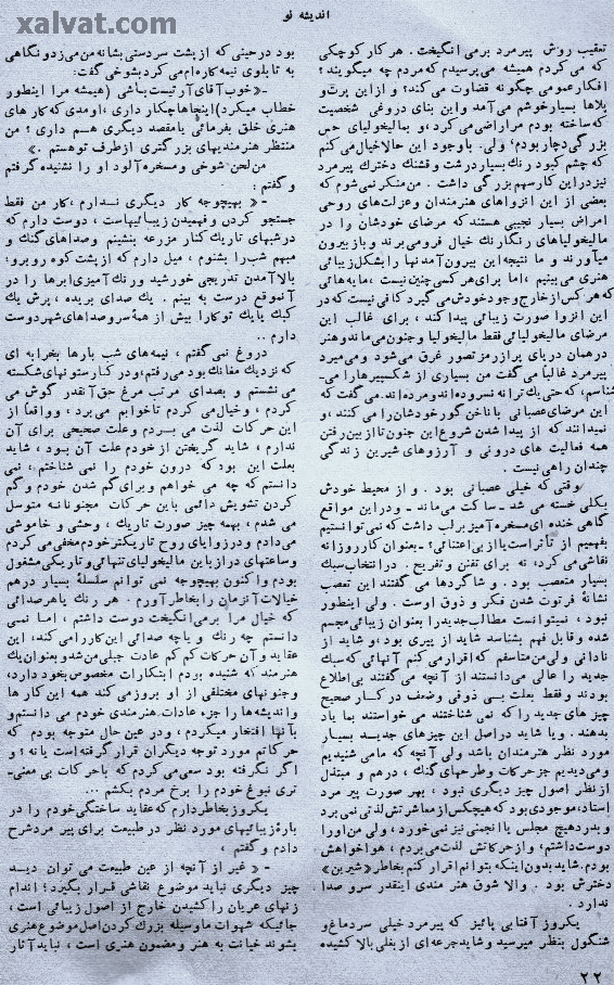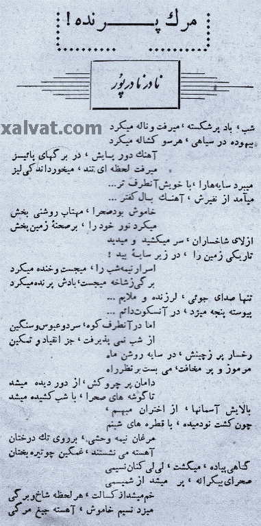 (با نوشته هائی از:زنجانی،قندهاریان،رحمت الهی،فضل الله گرگانی ،ابراهیم گلستان، حسين ملک، نادرپور، انورخامه ای)