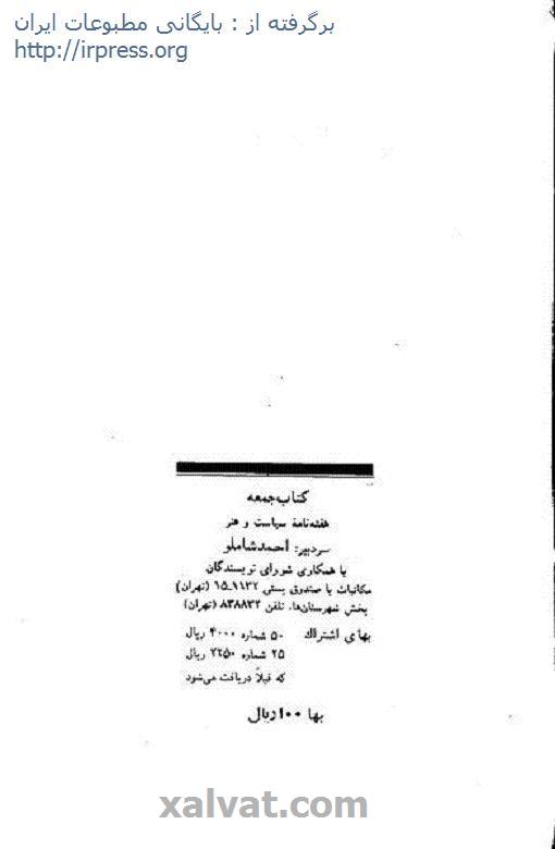 "کتاب جمعه" ، شماره 1 ، 4 مرداد 1358