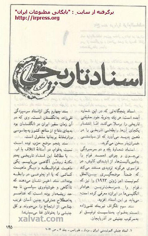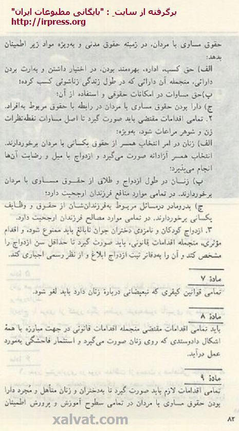 اعلامیهء رفع تبعیض زنان + اسنادی از قوام السطنه ، تقی زاده و خلع سلاح مجاهدین و فدانیان