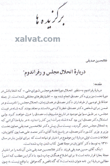 غلامحسين صدیقی : در بارهءانحلال مجلس و رفراندوم