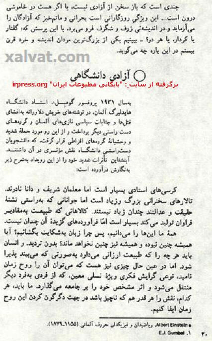 آلبرت اينشتین : در بارهء آزادی (آزادی دانشگاهی ، فاشيسم و علم ، آزادی ، روش های نوين تفتيش عقايد ،حقوق بشر)