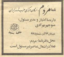 2) آنچه به نقل ازنامه « مردم » مابین حروف با حروف سیاه آمده ، عیناازنامه« مردم » اقتباس شده است.