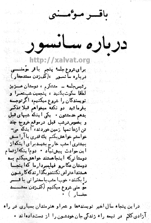 سخنرانی باقر مومنی در "ده شب شعر" : دربارهء سانسور و عوارض آن + پاسخ به سئوالات مطرح شده