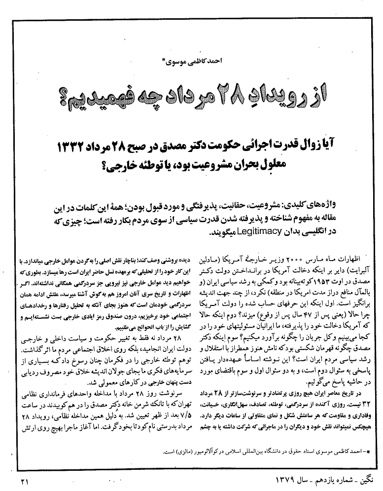 احمدکاظمی موسوی : از رويدادِ 28 مرداد چه می فهميديم ؟