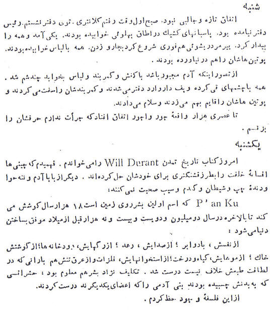 چگونه گذرانده اند و به اصطلاح یادداشتهای روزانه یک هفته خود