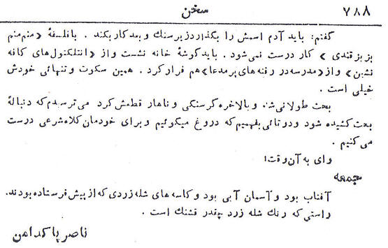 دورۀ ششم سخن، آبان 1334، به چاپ رسیده است. بازخوانی این متن
