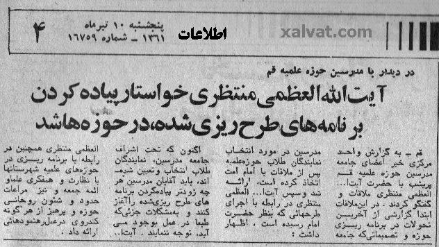 پاسخ های منتظری به پايگاه اينترنتی "14 معصوم"