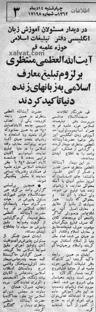 پاسخ های منتظری به پايگاه اينترنتی "14 معصوم"