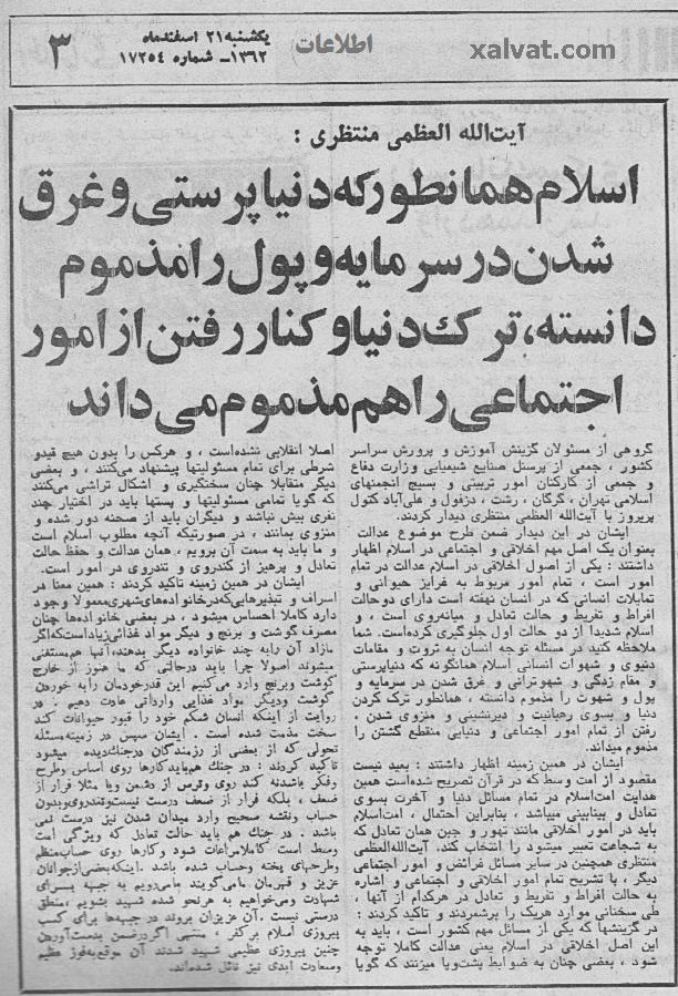 پاسخ های منتظری به پايگاه اينترنتی "14 معصوم"