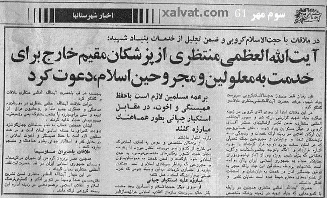 پاسخ های منتظری به پايگاه اينترنتی "14 معصوم"