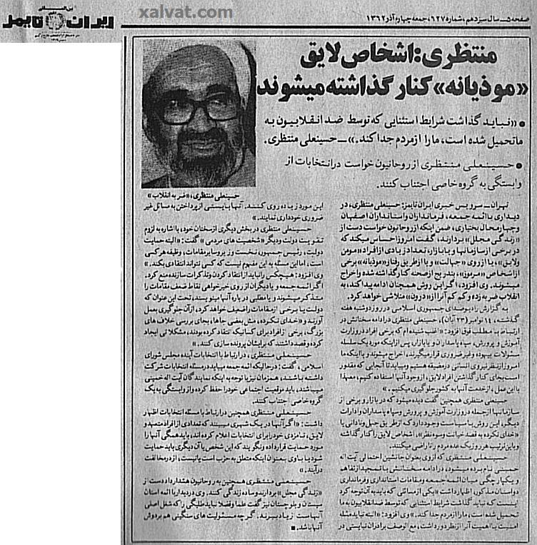 پاسخ های منتظری به پايگاه اينترنتی "14 معصوم"