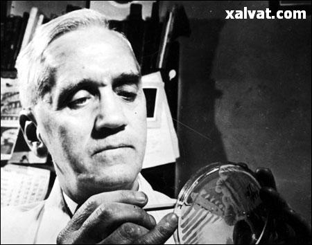 : الکساندر فلمنيگ کاشف پنيسيلين (نخستين آنتيبيوتيک) در حال كشت دارويي كه