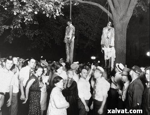 صحنه اعدام غيرقانوني دو سياه متهم به جنايت را که اصطلاحا «لينچ» ناميده ميشد