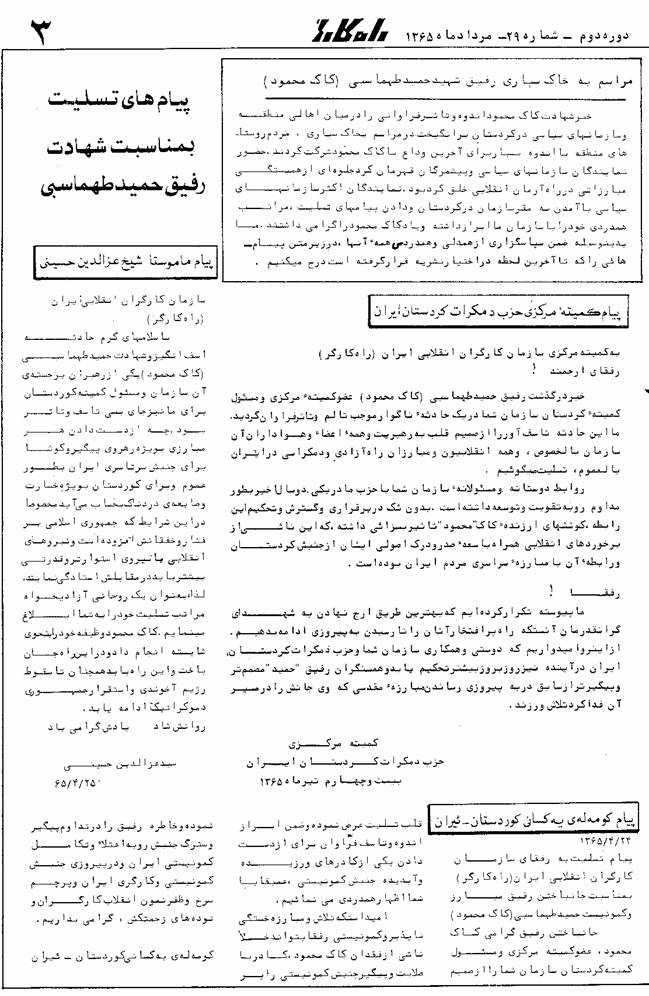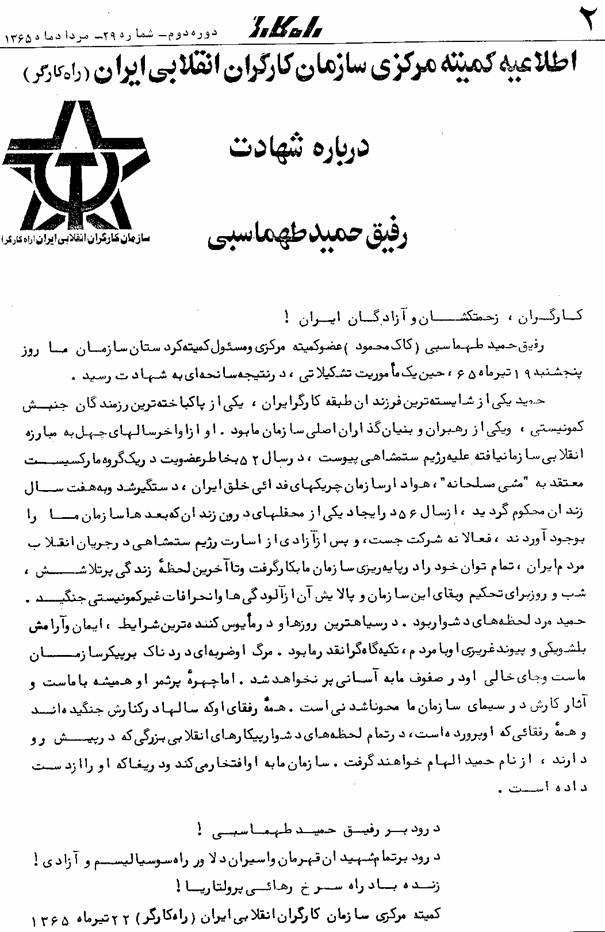 صفحه ای که " راهِ کارگر " به حميد اختصاص داده بود را می آورم . با اين توضيح