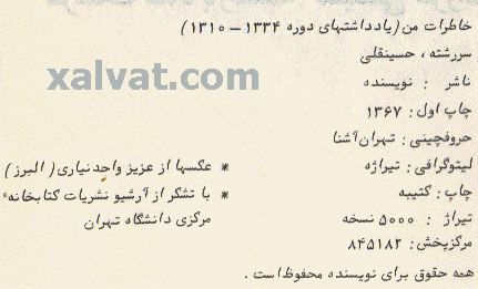حسينقلی سررشته : خاطرات من (يادداشتهای 1334-1310) :