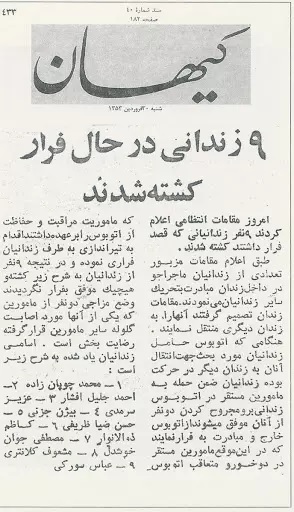گزارش محرمانهی سفارت امریکا در تهران در مورد دادگاه تجدیدنظر ۱۴ نفر ۲۹ فروردین پنجاهمین سالگرد ترور ۹ تن از مخالفان سرشناس حکومت شاه در تپههای اوین است. در این روز در سال ۱۳۵۴، ۷ تن از هموندان «گروه یک» (که رفقایشان به همراه «گروه دو» سپس «چریکهای فدایی خلق» را بنیان نهادند) و ۲ تن از اعضای مجاهدین خلق ایران، در حالیکه همگی در حال سپری کردن دورهی زندان خود بودند، توسط شمار برگزیدهای از اعضای ساواک به بیرون از زندان اوین و به تپههای پیرامون برده و در آنجا به گلوله بسته شدند. کشتهشدگان اینها بودند: محمد چوپانزاده، مشعوف کلانتری، احمد جلیل افشار، عزیز سرمدی، عباس سورکی، بیژن جزنی، حسن ضیاءظریفی (از «گروه یک») و کاظم ذوالانوار و مصطفی جوان خوشدل (از مجاهدین). روزنامهها گزارش ساواکنوشتهای را در روز بعد منتشر کردند با این عنوان: «۹ نفر از زندانیانی که قصد فرار داشتند کشته شدند.» (اطلاعات ۳۰ فروردین ۱۳۵۴). از آنجا که ۵۰ سال پس از این رویداد، ماجراهای دستگیری «گروه یک» و ترور این ۹ نفر بهخوبی روشن و در پژوهشهای گوناگونی گفته شدهاند، نیازی به بازگویی چند بارهی این روایتها نیست. بهویژه ازآنرو که بازجو و شکنجهگر ساواک بهمن نادریپور (با نام سازمانی «تهرانی») شرحی از حضور خود و همکارانش در این ترور را در اعترافاتش در دادگاه انقلاب در سال ۱۳۵۸ بازگفته است.[۱]