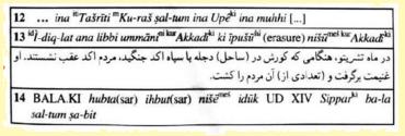 و سد راهش نشوند. در مورد وقایع اتفاقیه در اوپیس، اتفاق نظر وجود ندارد. برخی همانند خانم امیلی کورت، با اشاره به عبارت زیر در وقایعنامه نبونئید (ستون سوم، سطر ۱۲ تا ۱۴) ادعا میکنند قتل عام مردم آن شهر به دست کورش روی داده، اما امثال ویلفرد لمبرت در این نتیجهگیری تردید کردهاند... ![]()