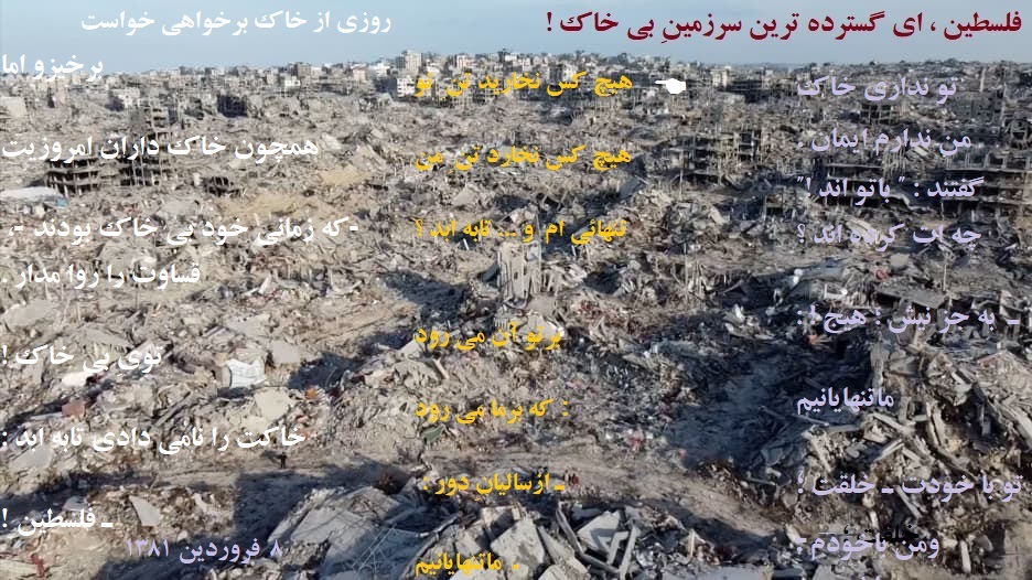 شعاري از من ( با نامِ مستعارِ عبدالصمد قندچي) باعنوانِ فلسطين ، اي گسترده